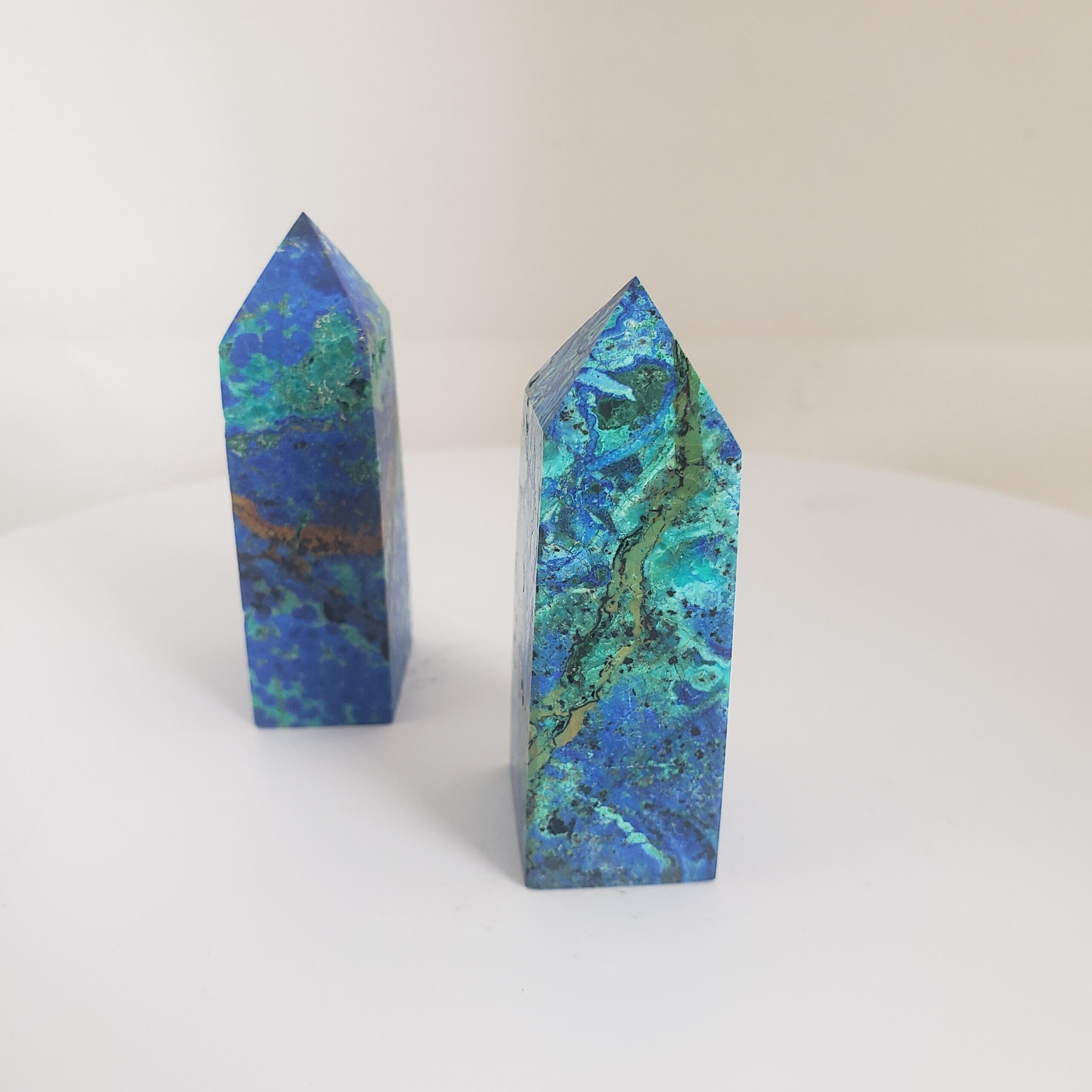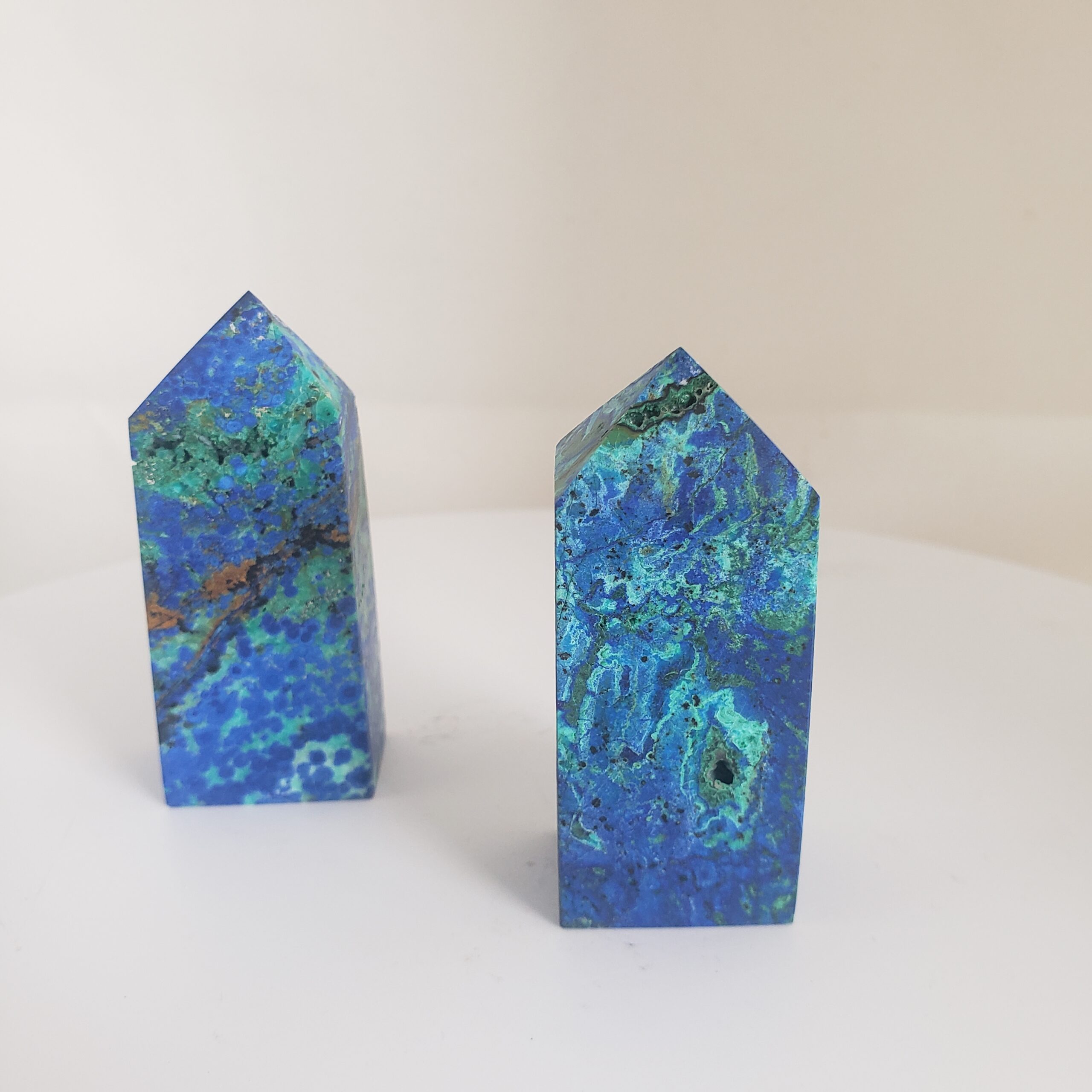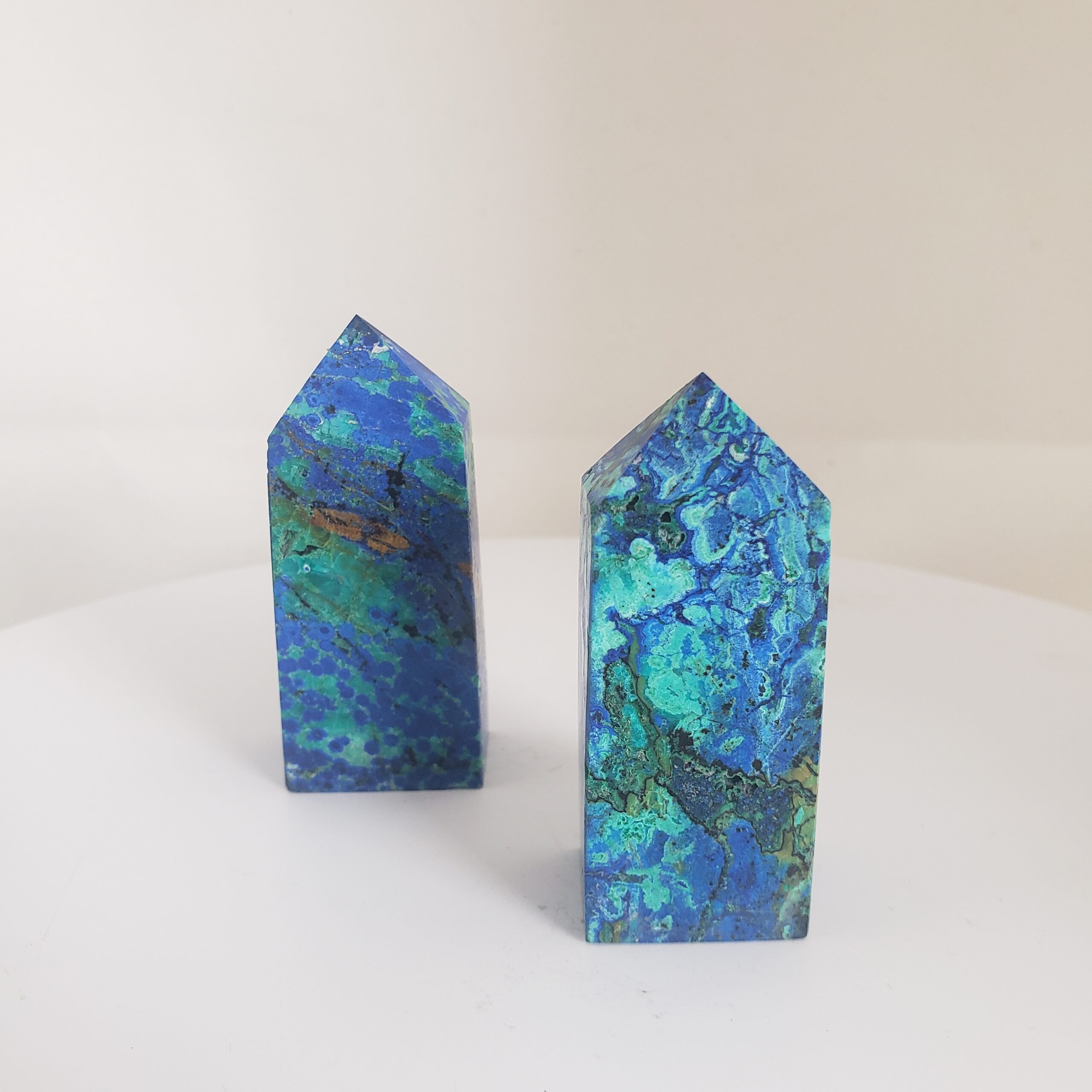 Awaken higher insight and empowered action with these rare Azurite with Malachite Towers. This powerful crystal pairing works across intuition, emotion, and embodiment – supporting deep inner awareness while encouraging aligned, conscious movement forward.